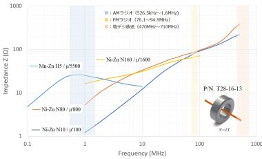 | Ni-Zn系ノイズ対策推奨材 | 高周波帯域のノイズ対策用として使用されているNi-Zn系材料です。 |