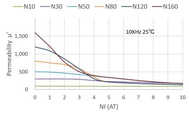 | Mn-Zn系ノイズ対策推奨材 | 低周波帯域のノイズ対策用として使用されているMn-Zn系高透磁率材料です。 |